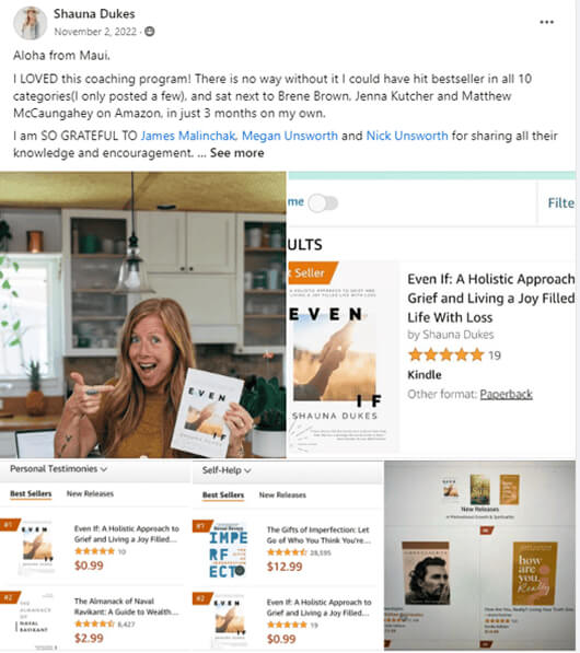 We will create a book directory of everyone that hit Bestselling Author within 90 Days and then promote it to our audience. Email list + all social assets includes over 100,000 people!