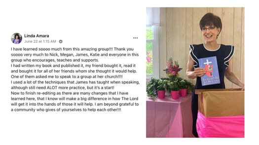Success comes faster when you’re not doing it all alone. Our community will foster new friendships, collaborations, and even business partnerships. In the past we found that many of our clients would review each other’s books and support each other’s book launches which is huge.